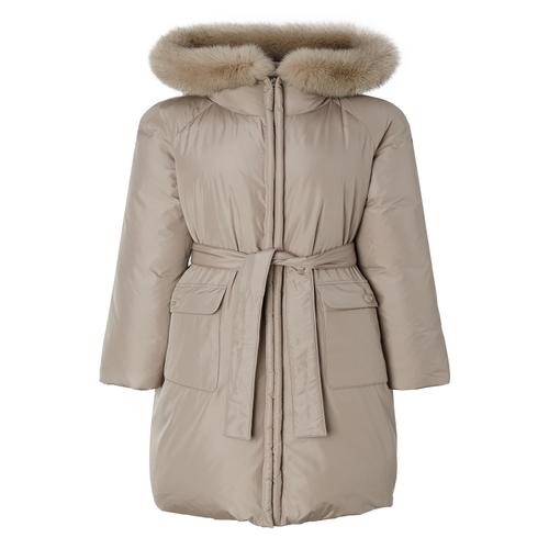질스튜어트 뉴욕 여성 PREMIUM 베이지 탈부착 폭스퍼 후드 카라 구스다운 롱패딩 점퍼 (JSJU5D200I3)