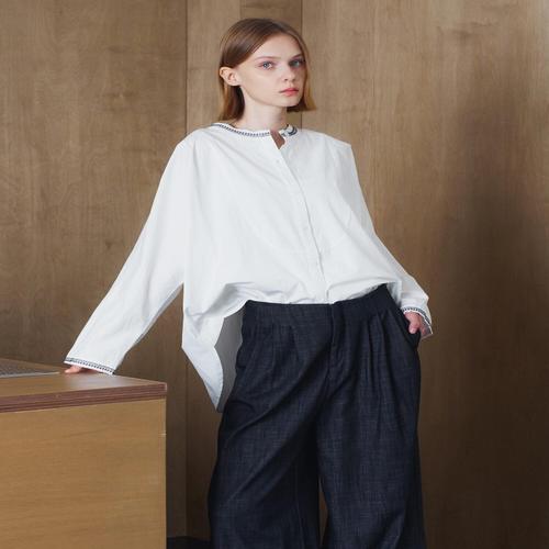[나인식스뉴욕]차이나 카라넥 절개 패턴 긴팔 블라우스 (NP3BA020L0)