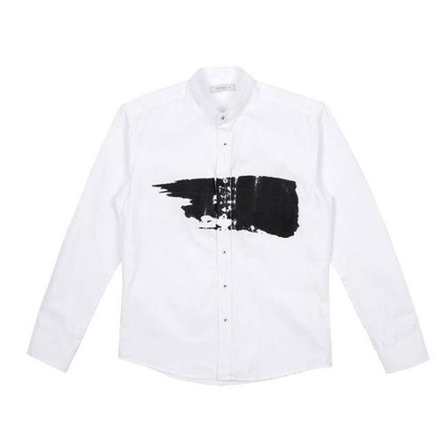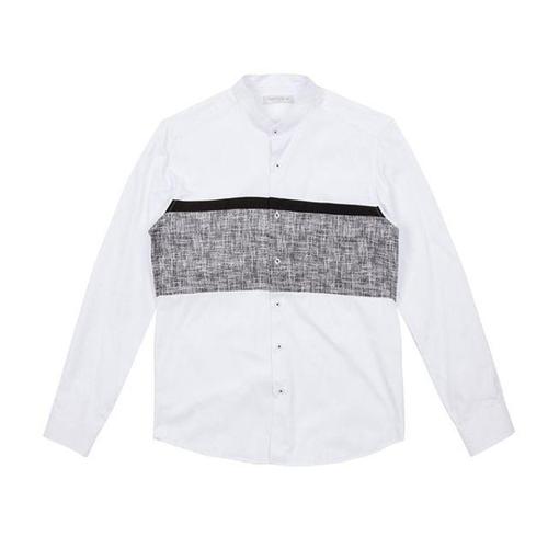 [더셔츠스튜디오]화이트 슬림핏 레이온혼방 차이나카라 솔리드 셔츠