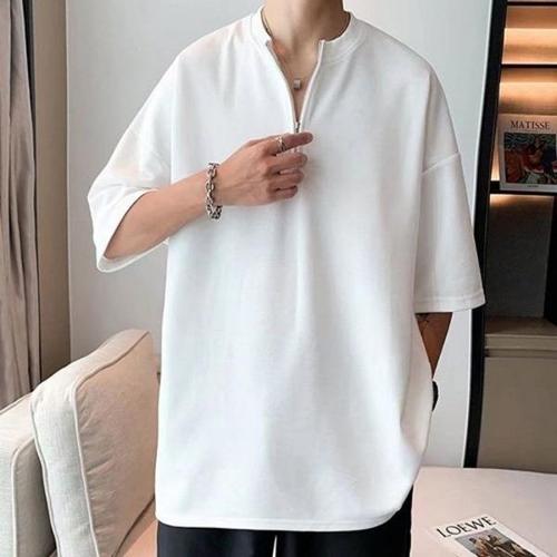 [셀러허브_여성트랜드패션]차이나카라반팔티 라운드집업티 지퍼 남성데일리룩 맨투맨반팔티 20대남자코디