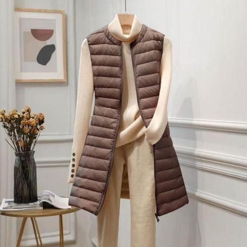[셀러허브_여성트랜드패션]Rly 2컬러 차이나넥 베이직 롱 경량조끼 겨울패딩조끼