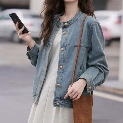 [셀럽하우스]차이나카라 CSZI5845 데님 자켓 라운드넥 모던 청자켓 중청