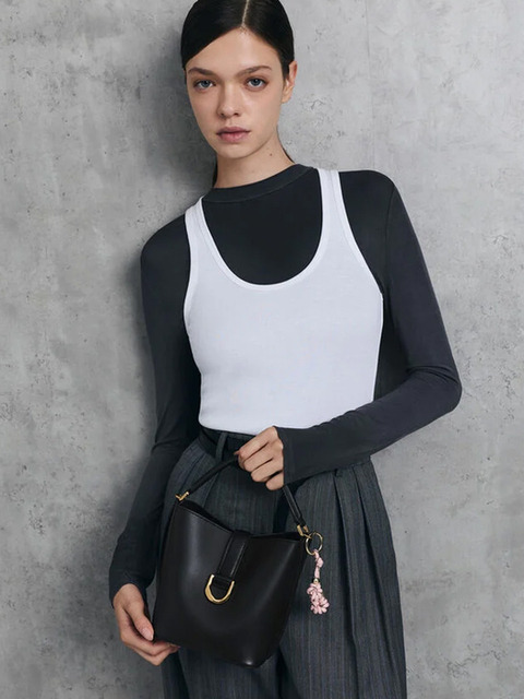 [찰스앤키스] 가빈 레더 벨티드 탑 핸들 버킷백