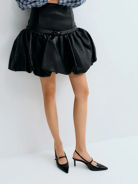 [찰스앤키스] 새틴 보우 포인티드 토 슬링백 펌프스
