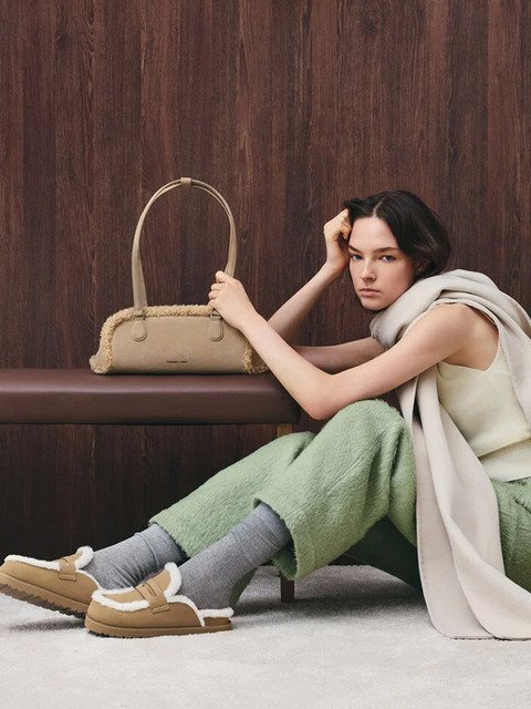[찰스앤키스] 케리 리사이클 스웨이드 & 인조 시어링 체인-핸들 크로스바디 백 CK2-80782515-2