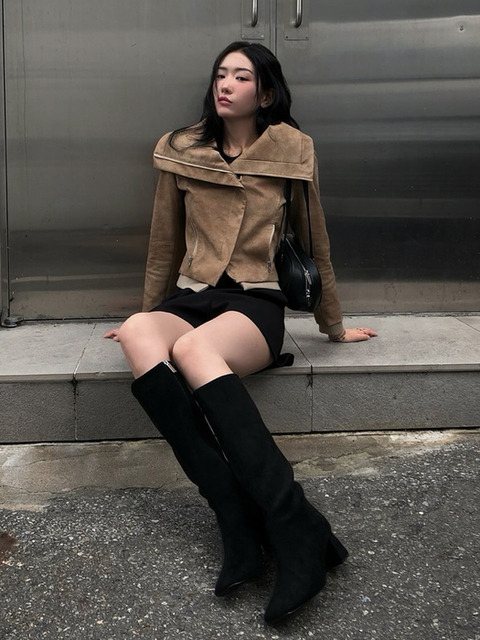 [찰스앤키스] 인조 스웨이드 스퀘어 토 사이드 지퍼 니하이 부츠