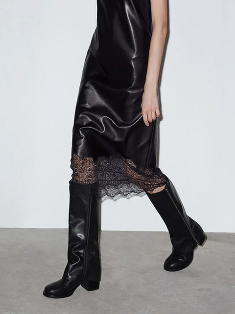 찰스앤키스 롱 부츠 니하이 스퀘어토 사이드 지퍼 25FW