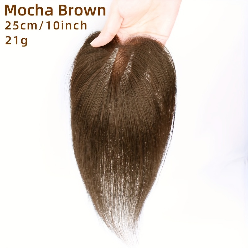 TEMU 여성용 수제 인모 가발 조각 | 상단 헤어 두꺼움, 볼륨, 흰머리 커버, 매끄러운 연출