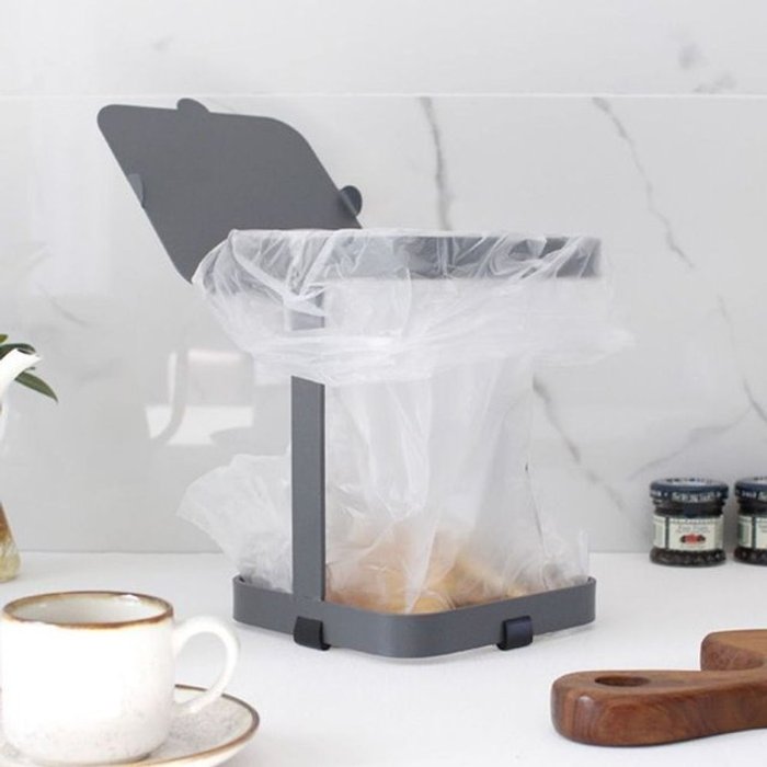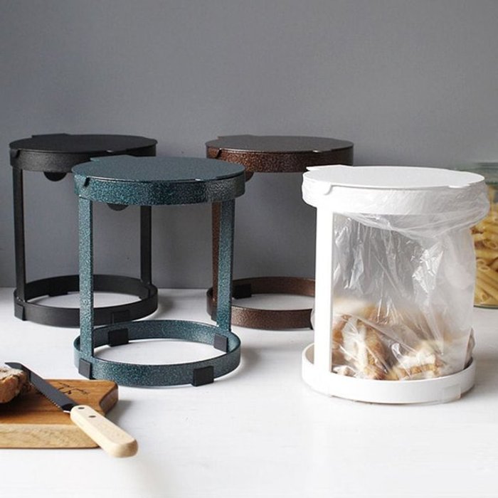 엄지척 다용도 미니 음식물 철재 쓰레기통 비닐 홀더 주방 휴지통