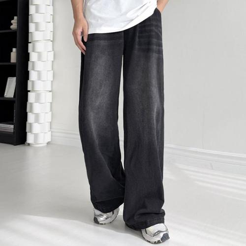 [옷자락]남성 캐주얼 핀턱 버튼 밴딩 와이드 데님 청바지