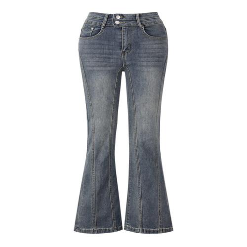 [다잇템]여자 워싱 하이웨이스트 나팔 투버튼 청바지