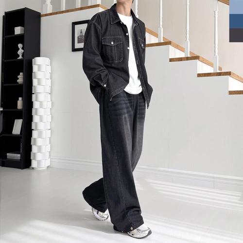 [sado]남성 청바지 사이드턱 스냅 버튼 와이드 밴딩 데님팬츠 SF1045M