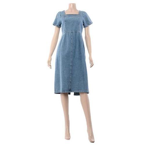 유아몽드 / 노카라 라운드 데님 롱원피스 반팔 청 클래식 원피스