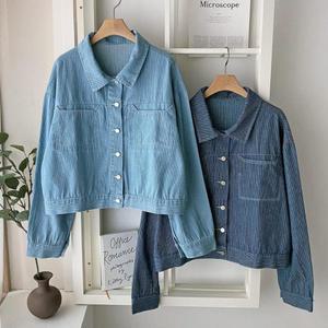 [옷자락] 여자 줄무늬 청남방 밑단셔링 키작녀 셔켓 청자켓