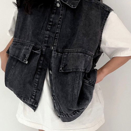 [HYIJY8YT_4B]가을 조끼 베스트 루즈핏 청조끼 빅포켓