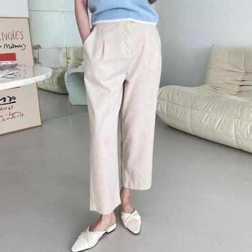 F006836_와이드 뒷밴딩 통바지 린넨/마/청통바지