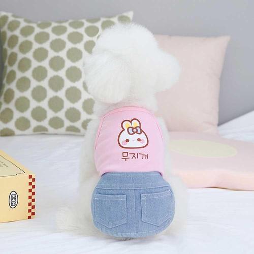 [셀럽하우스]애견 CYRW6822 그림 세트 귀여운 토끼 스커트 끈나시 청 원피스