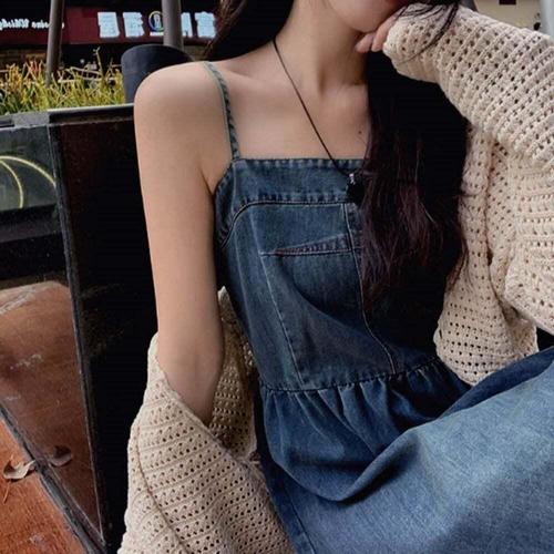 [기타브랜드]데님 드레스 트렌디 원피스 롱원피스 나시 민소매 데일리 패션 청원 청치마 끈나시