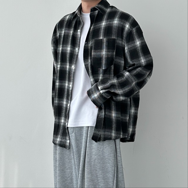 오버핏 기본 체크 긴팔 남방 셔츠 난방 남녀공용 체크무늬 데일리 (WFJF9QI)