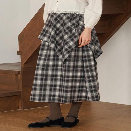 파라노말샵 / 체크 언발 밴딩 레이어드 스커트 (파라노말샵)