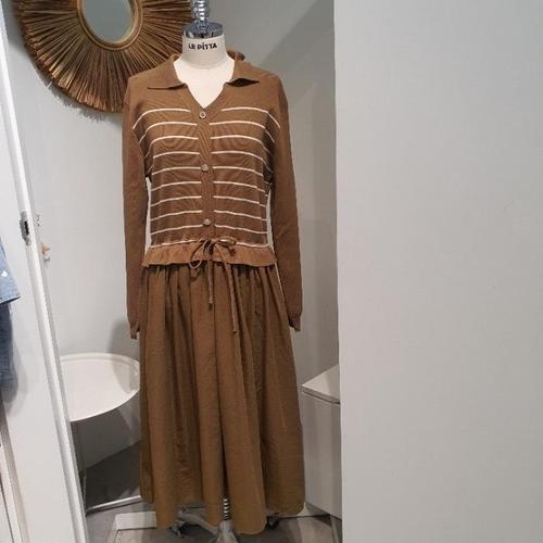 르피타 HC06 내추럴 스트라이프 셔링 롱 원피스(베이지) 내추럴 스트라이프
