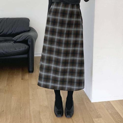 [미라클세븐]여성 도톰 하이웨스트 체크 A라인 롱스커트