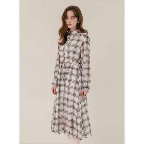 [막스까르띠지오]모던 체크 셔츠형 롱 원피스