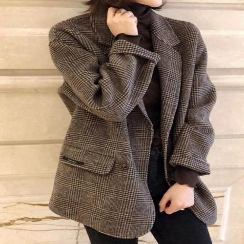 여성 체크무늬 모직 자켓 여자 코트 모직 재킷 루즈핏 쇼트 코트 아우터