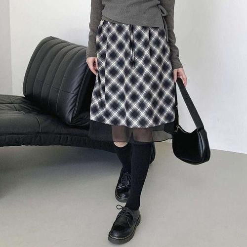 [신상오픈런]여성 체크 패턴 캉캉 미니 스커트 밴딩 디자인
