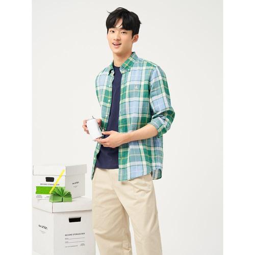 [빈폴멘]리넨 체크 셔츠 - 그린 (BC5364C25M)
