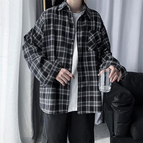 [빌리버스] 남성 체크셔츠 기모 오버핏 롱슬리브 남방 BAND010