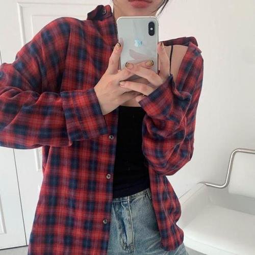 [다잇템_패션]여자 면원단 캠퍼스룩 타탄체크남방 셔츠