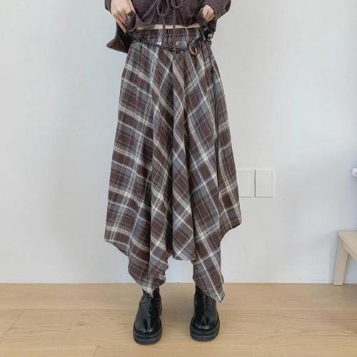 [다잇템][다잇템] 여자 롱 스트랩 키치무드 격자체크 언발 면원단 스커트_23226463_588872