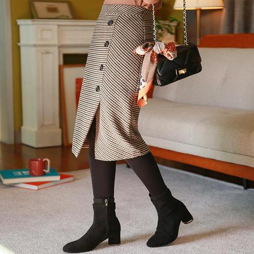 [스타일온미][스타일온미] 버튼디테일 앞트임 H라인 울10 체크미디스커트