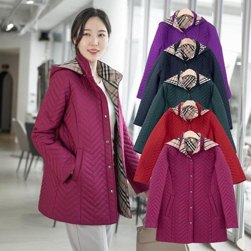 [모슬린]엄마옷 3온스 체크후드 누빔자켓 515FGH689 마담/중년여성/빅사이즈/50대/60대