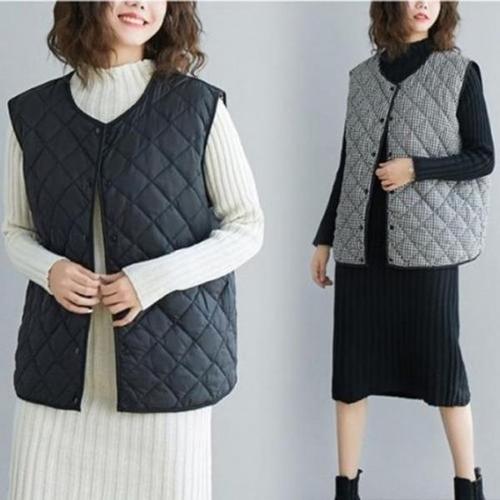 [엄지척]F06293 양면 윈터 누빔 퀼팅 따뜻 체크 경량 패딩조끼_20363193_667501