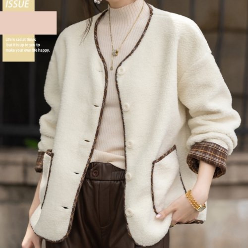 [셀러허브_여성트랜드패션]여성 숏 겨울 플리스 체크 벨벳 후리스 코트 자켓 하프