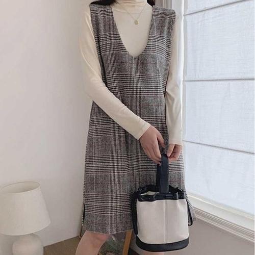 [엄지척]민소매 봄 원피스 미니 겨울 가을 체크 H라인 베이직_19804346_667501