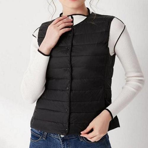 ZAJA 여성 겨울 경량 스탠드칼라 면 조끼