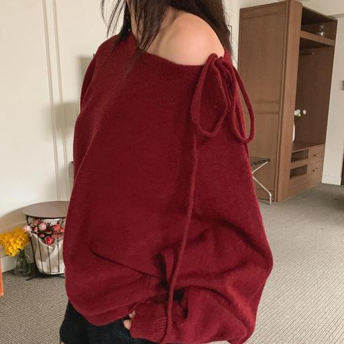 [미라클세븐]여성용 울 혼합 소재 심플 초커 스트랩 루즈 니트