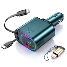 SUNRIVER 차량용 초고속 충전기 240W 3세대 4in1 C타입 2개 애플 변환 잰더 포함 PD USB 4대 동시 충전, 240W/앰레인보우 램프+C타입to애플 변환 젠더