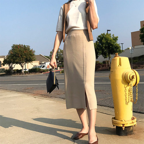 더클립 / 앙고라 츄러스 트임 H라인 니트 스커트