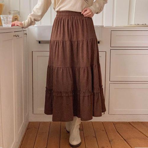 [유야]골덴 캉캉 플레어 롱 스커트 코듀로이 밴딩 치마 -SK0204H- 여성 가을 겨울