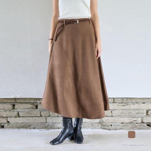 [다잇템][다잇템] 여성 후레아 허리밴드 롱 핀턱 세무 스커트_23328705_588872