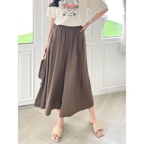 라부라카 여름 여자 밴딩슬랙스 7부 와이드팬츠 편한 통 바지 오버핏 치마바지 슬랙스 바지 빅사이즈 KS63