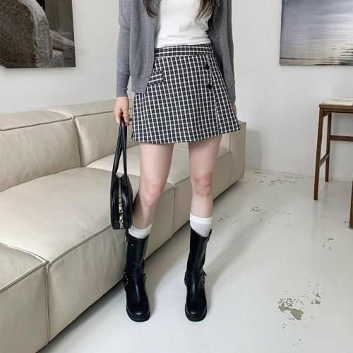 [다잇템][다잇템] 여자 키치무드 치마 랩 격자 투버튼 치마바지_23226616_588872