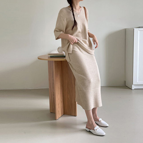 [핑크엘리제]라운드넥 니트 미디 스커트 세트 마니아투피스