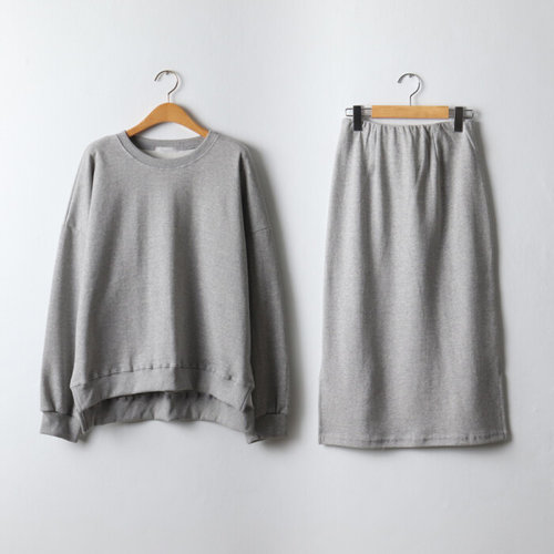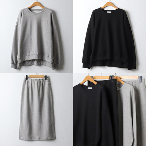 국내생산! 기본 무지 맨투맨 + 롱 스커트 밴딩 상하의 투피스 세트 3colors [ DB-1 + DB-5 ]