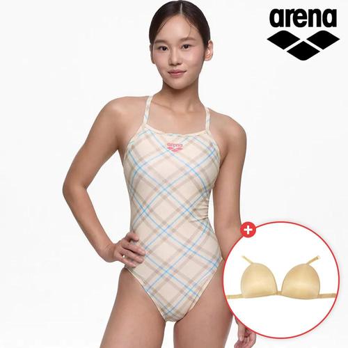 아레나 세이브존08 여성수영복 멜로우체크 2부 반신 U백 A5FL1LD40BEG