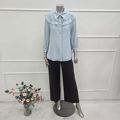 [에이치플러스몰]여름 봄 쉬폰 카라 러블리 물결 블라우스 여성 7부 빅